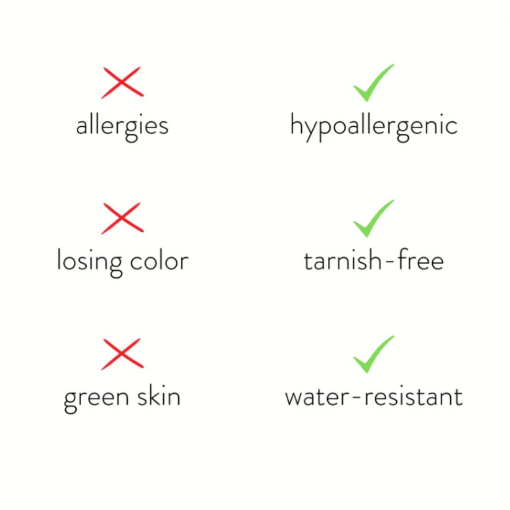 Omdat ze gemaakt zijn van waterdicht roestvrij staal, hoeft u zich nooit meer zorgen te maken over verkleuring of aantasting van uw sieraden.