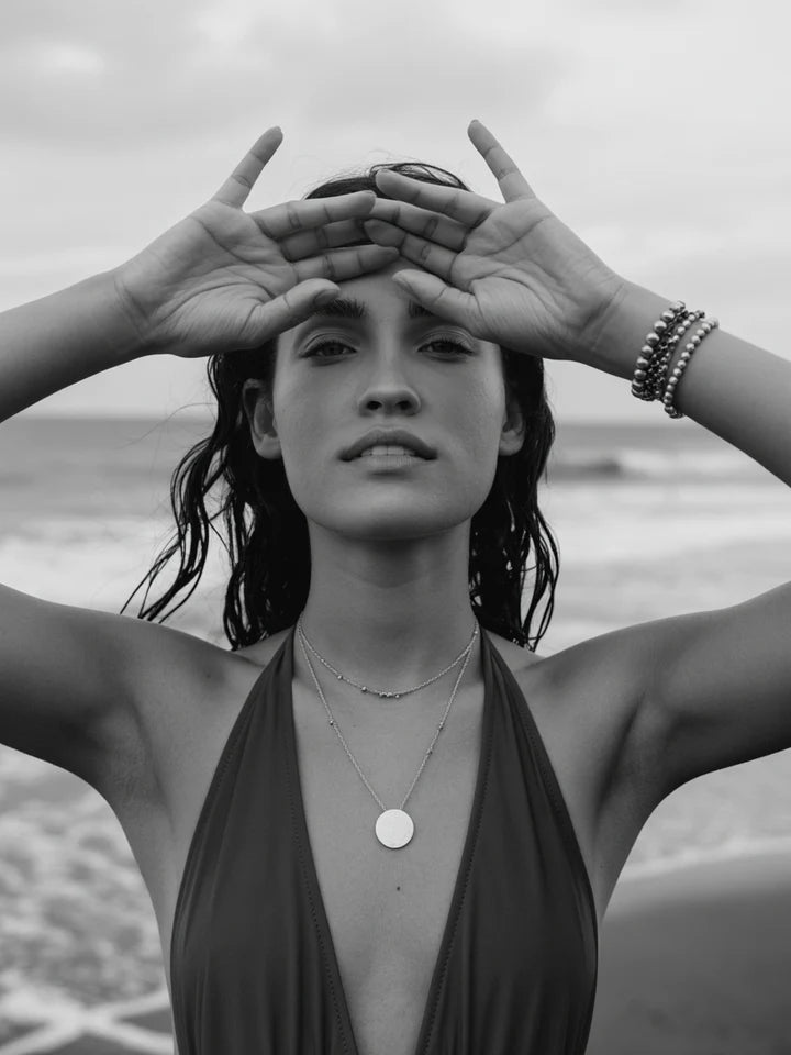 Hoewel onze sieraden waterbestendig zijn, raden we aan langdurige blootstelling, zoals zwemmen of surfen, te vermijden. Om de afwerking te beschermen, dient u direct contact met lotions, haarlak, parfum en andere schoonheidsproducten te vermijden.